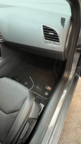 Het interieur van deze Seat Leon was aan een grondige diepte-reiniging toe. Op de bekleding waren meerdere vlekken te vinden (zowel op de voorzetels als op de achterbank), er zat vettige aanslag op het stuur en de armsteun.
